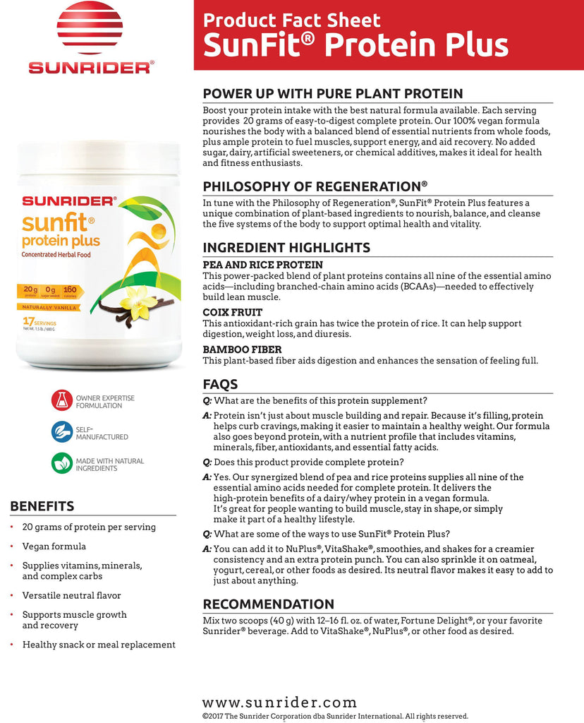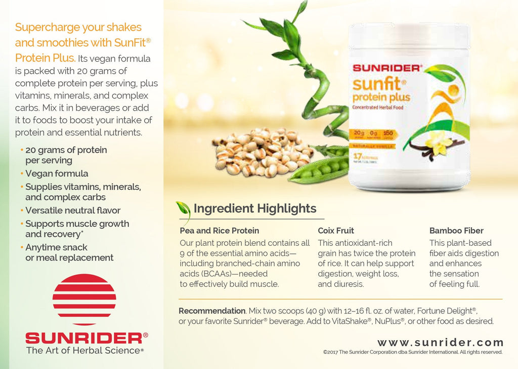 NOW AVAILABLE SunFit Protein Plus - Unique Protein Powder by Sunrider has a rating of 4.7 stars based on 6 reviews.